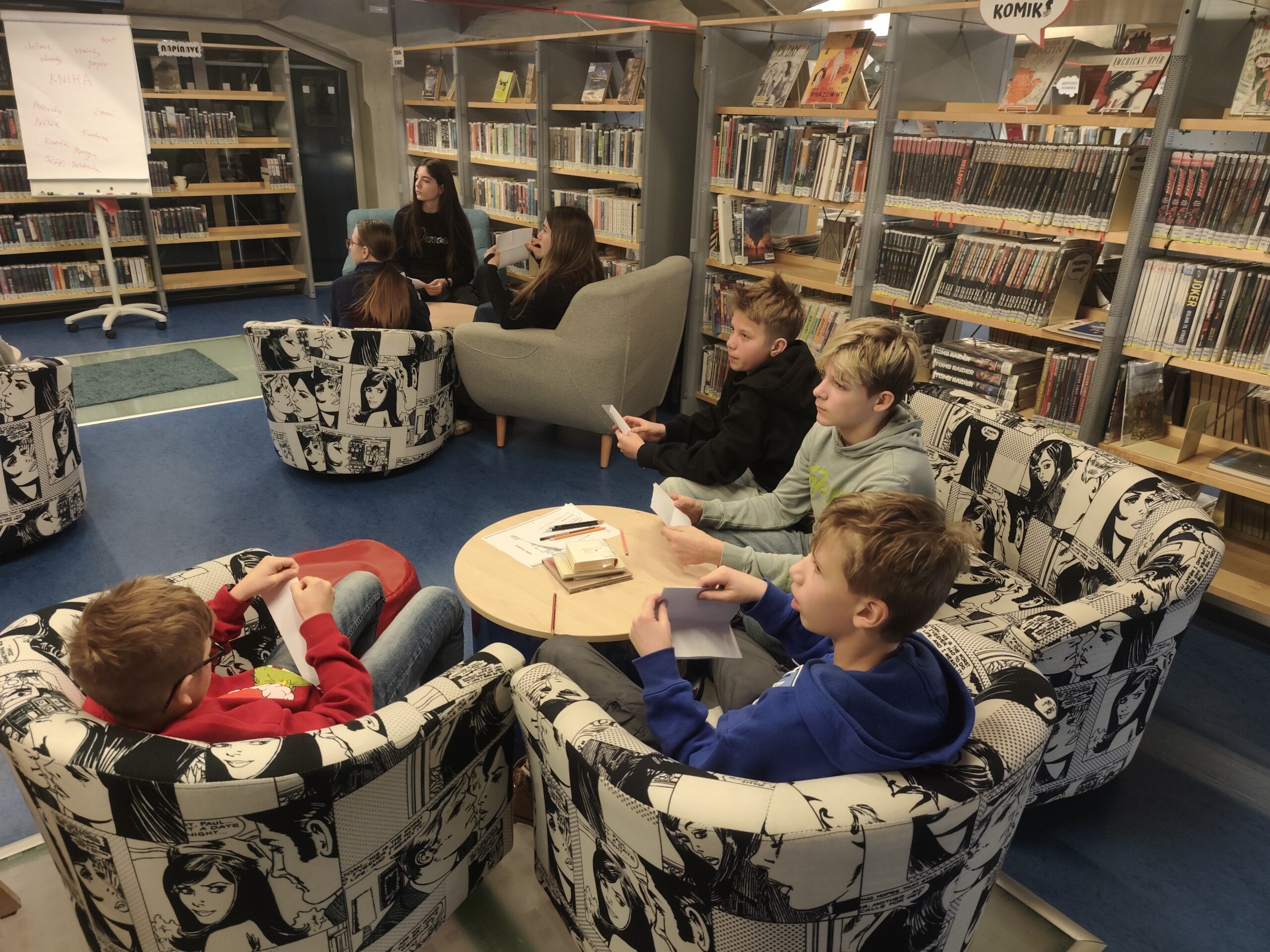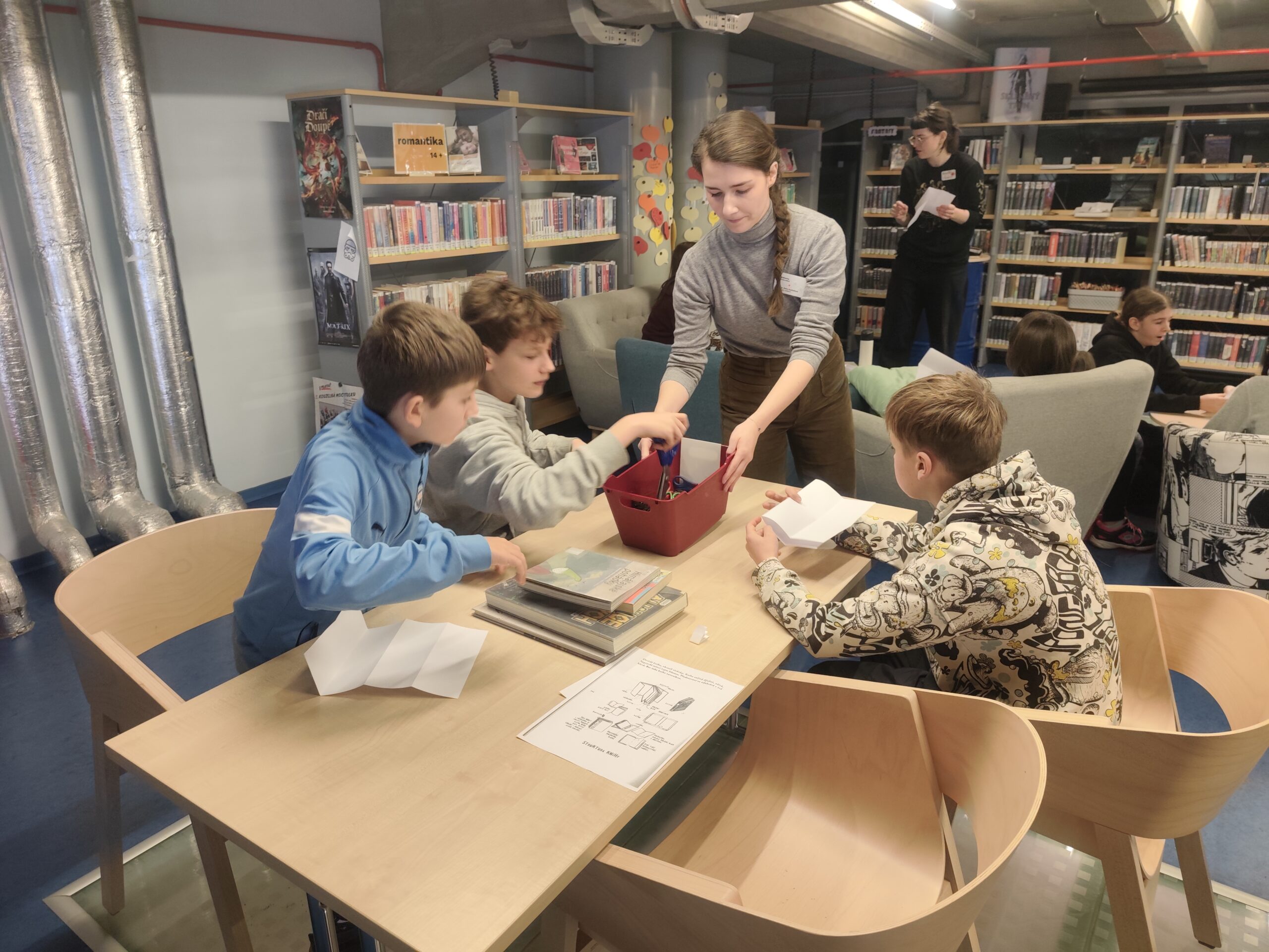 Ve čtvrtek 8. ledna navštívila 7.A Knihovnu města Hradec Králové, kde pro ně paní knihovnice měly připraven workshop s názvem Knižní veletrh. Žáci se dozvěděli, jaké profese se posílí na tvorbě a vydání knihy, co je jejich úkolem, co vše v knize mohou najít i různé zajímavosti z tvorby knih. Například něco o fungování knihtisku, že existují knihy zvláštních formátů, knihy které svítí a vyzkoušeli si tvorbu sazby knihy.