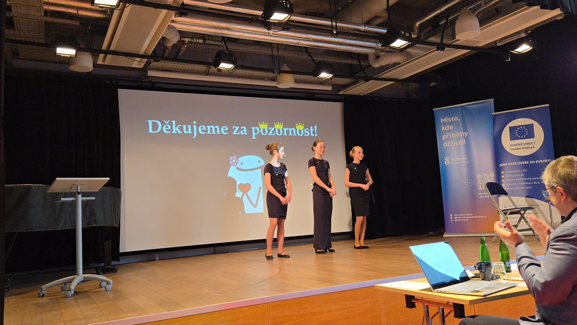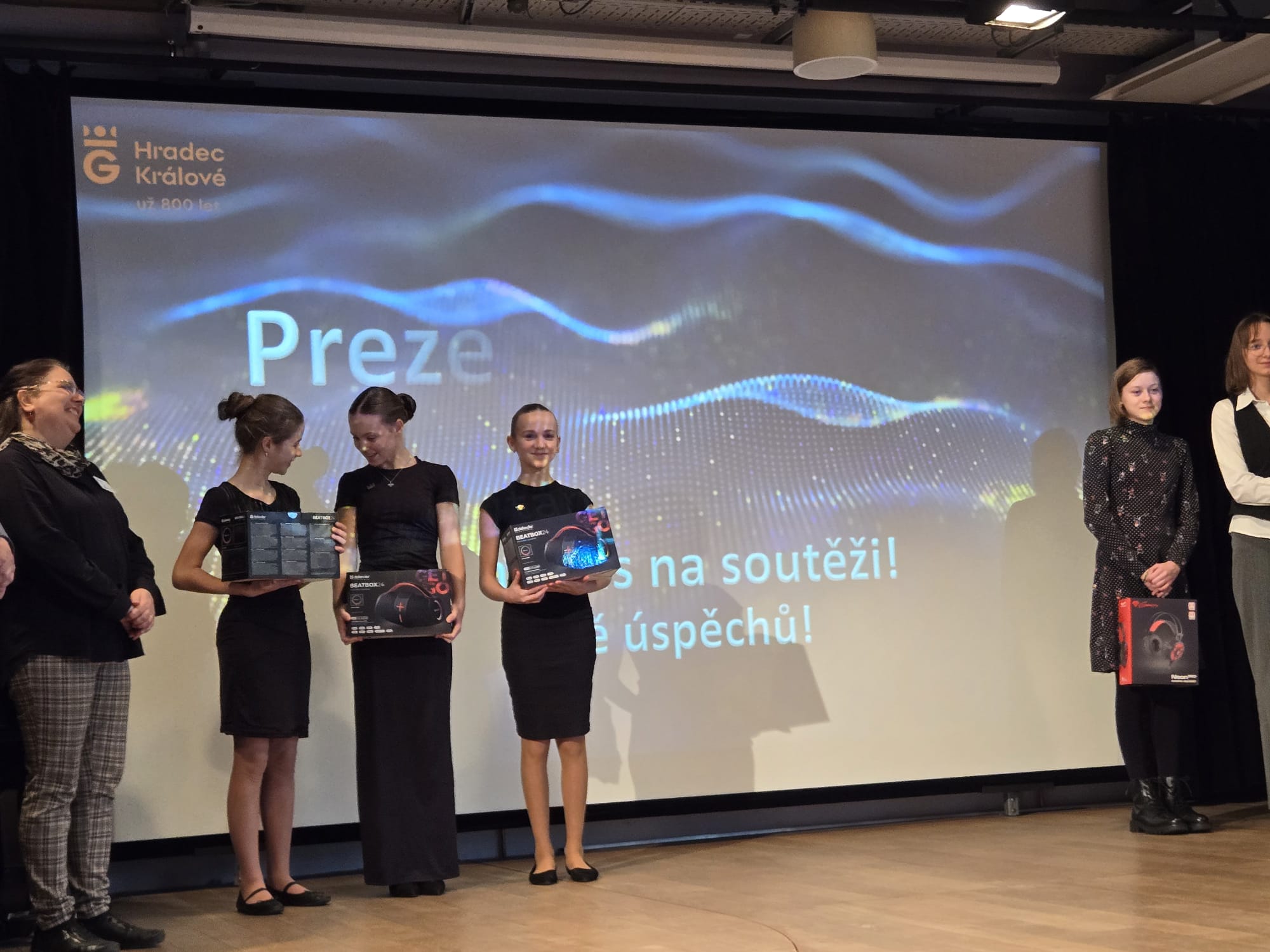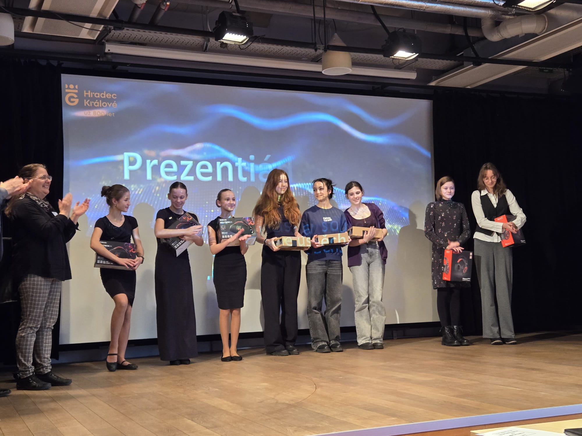 Tým 6. třídy ve složení Kateřina Petráková, Kateřina Zedníková a Elen Košťálová pod vedením paní učitelky Lenky Kopecké získal 2. místo v okresním kole Prezentiáda 2026, které se konalo v Knihovně města Hradce Králové.