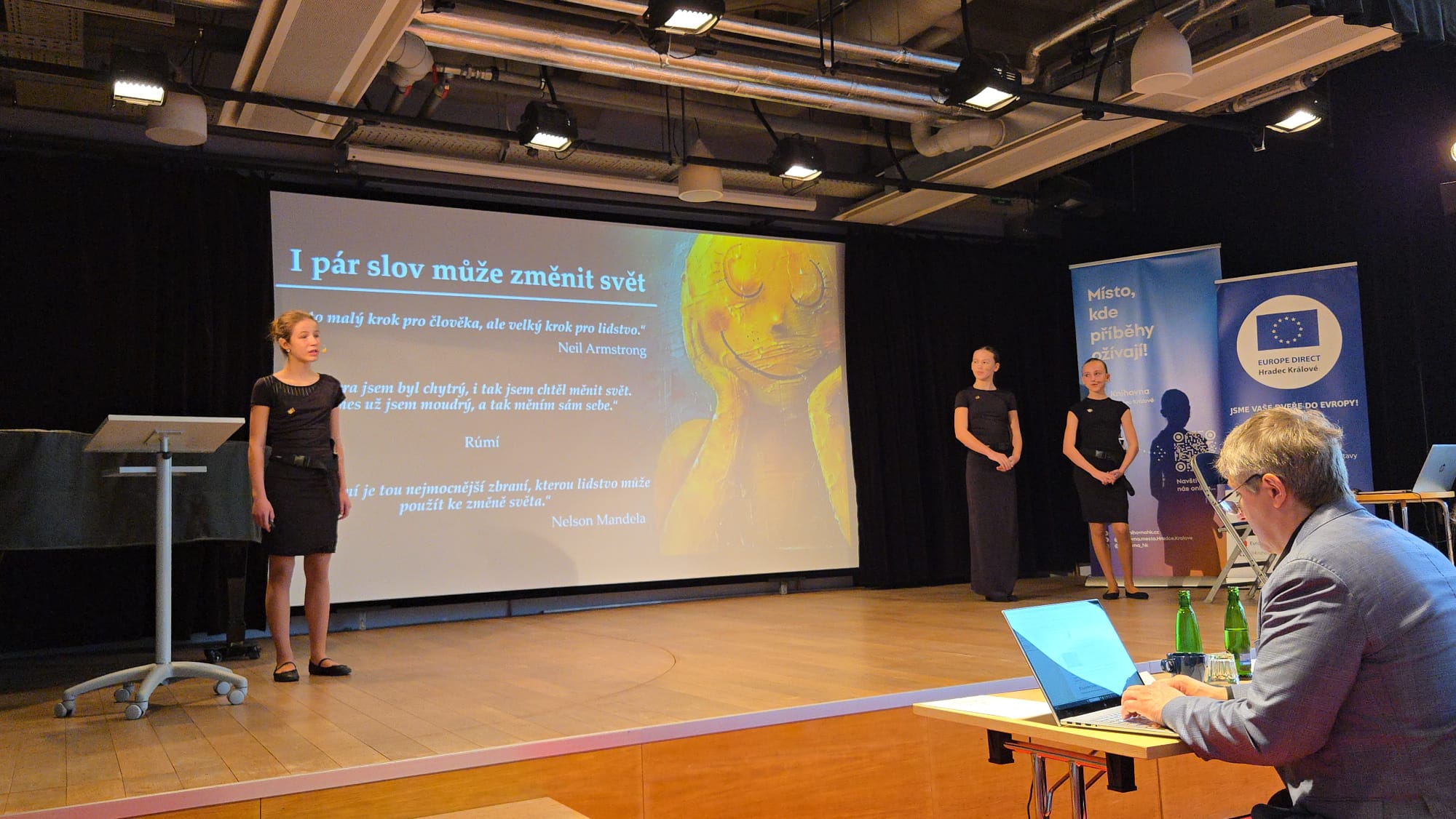 Porota ocenila, jak děvčata téma „Síla slova“ uchopila, kreativně připravila prezentaci a sebejistě ji předvedla před publikem.