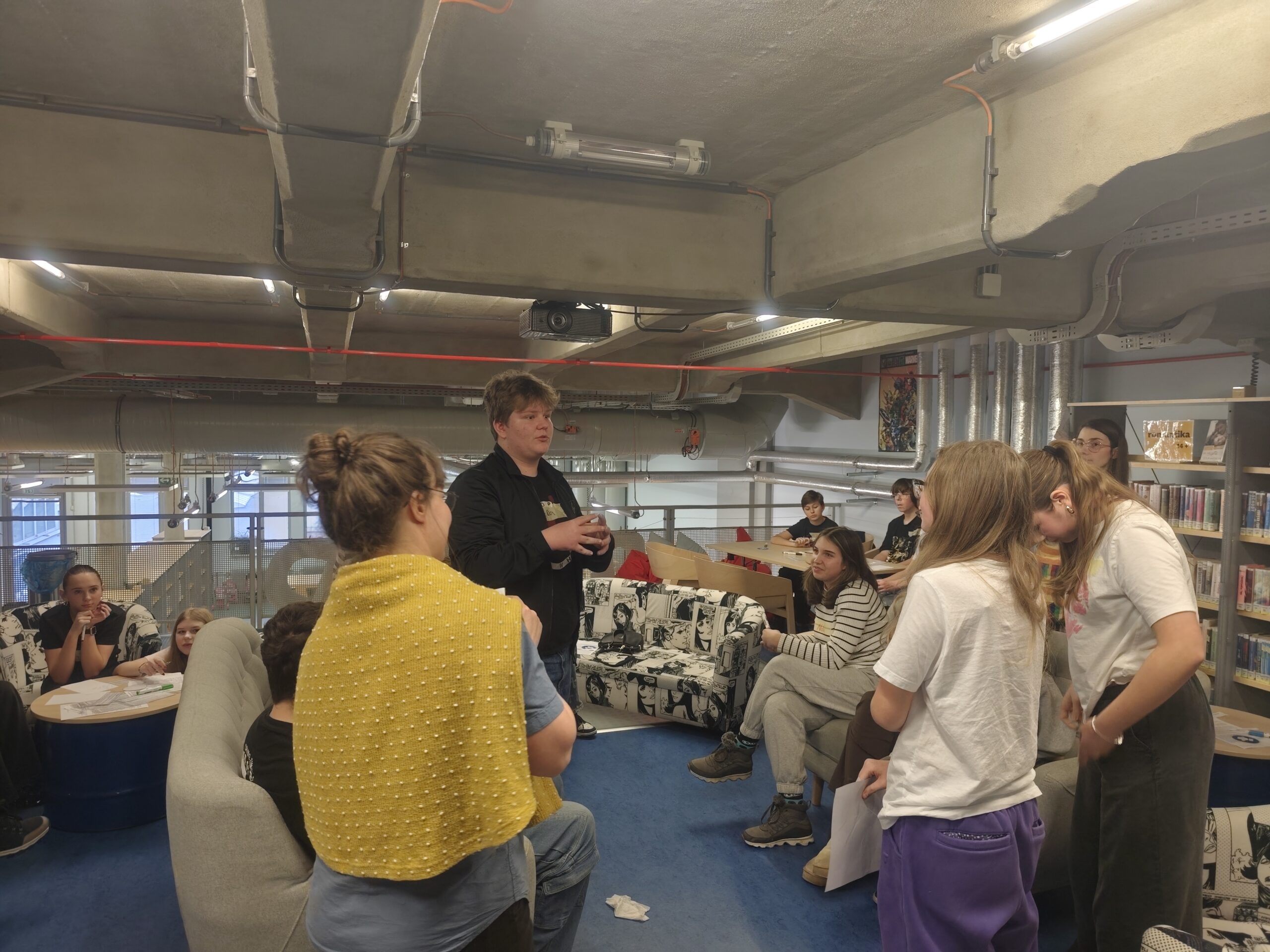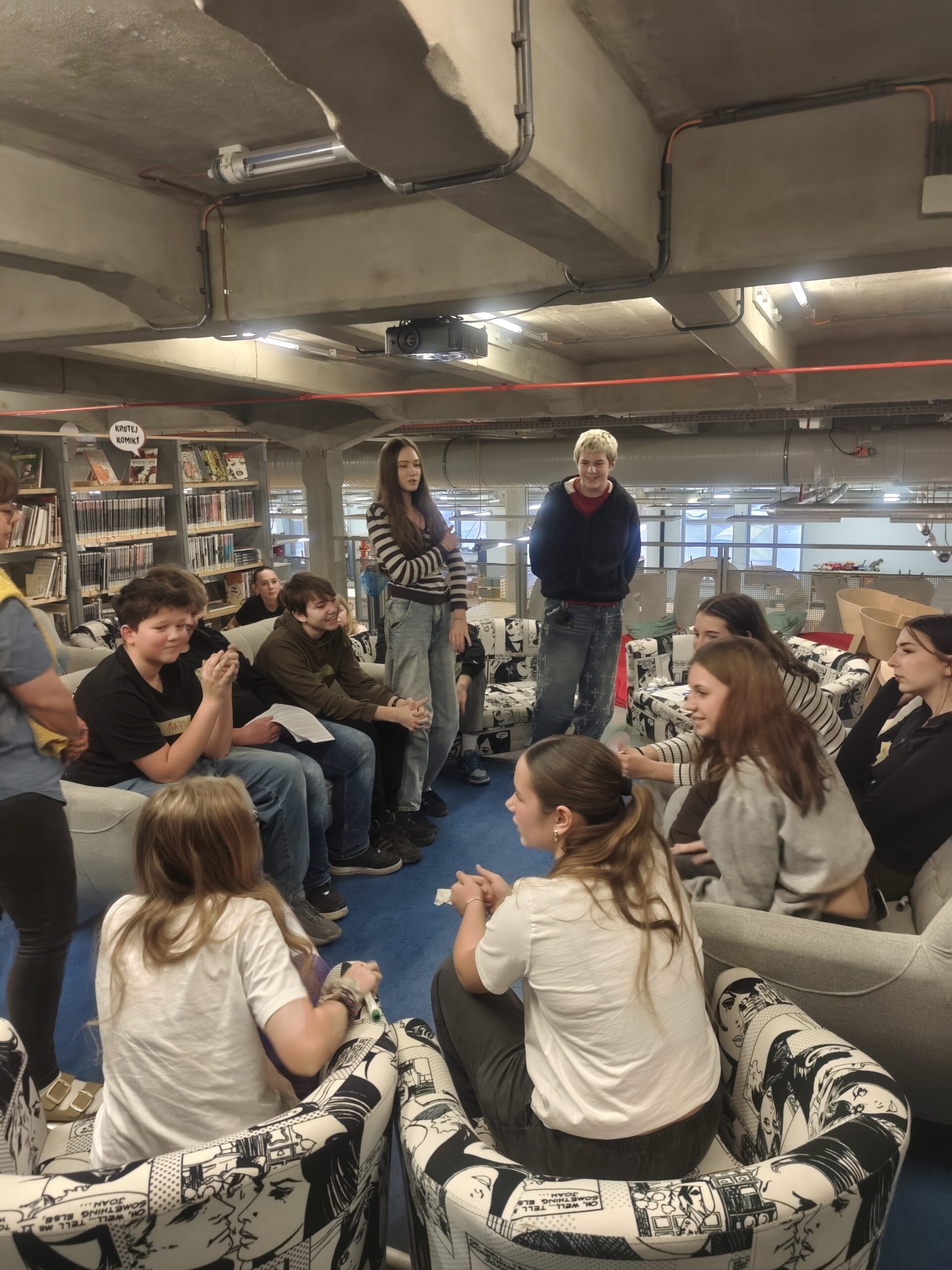 Ve čtvrtek 12. února navštívila 8. třída Knihovnu města Hradec Králové, kde pro ně měly paní knihovnice připraven workshop Názory v ringu. Žáci prodiskutovali své názory, dozvěděli se něco o argumentech i argumentačních faulech v diskuzích, probrali své zkušenosti a utkali se v diskuzích mezi sebou.