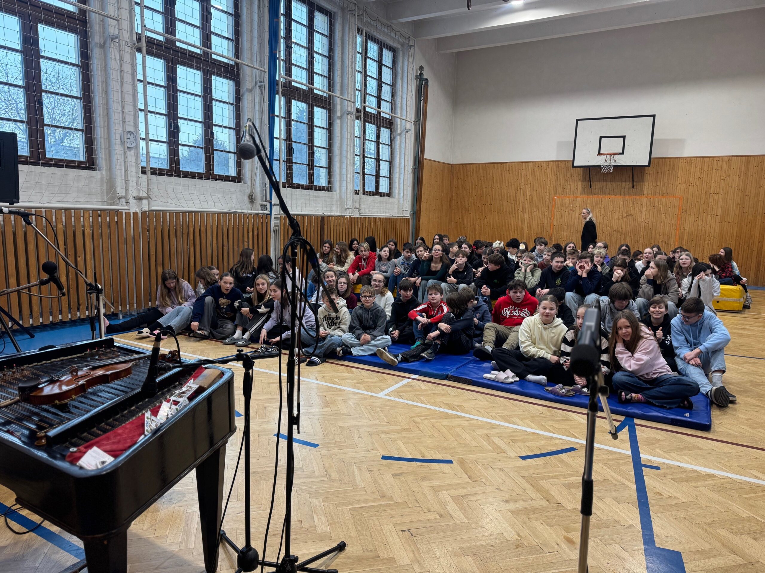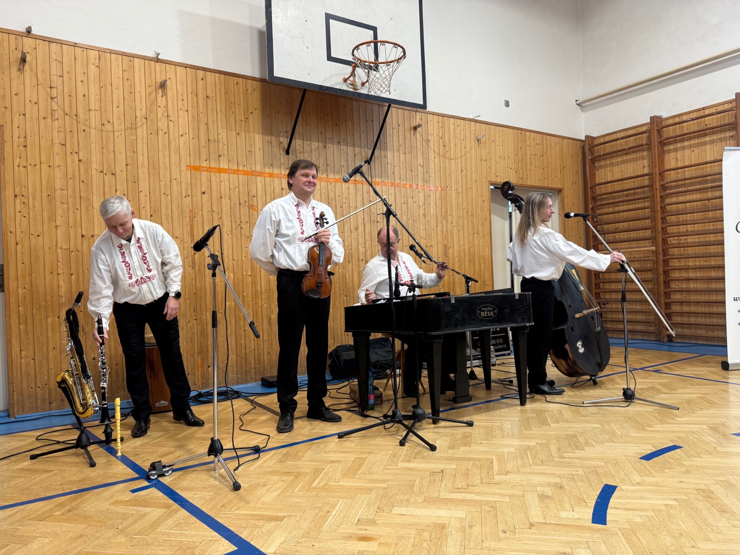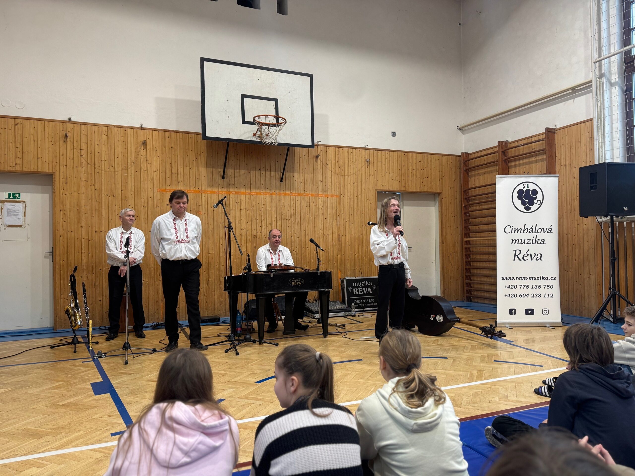 V úterý 3. února jsme na naší škole přivítali hudební skupinu Réva s cimbálem. Žáci si mohli poslechnout pestrý hudební program, ve kterém zazněly jak lidové a klasické skladby, tak i moderní písně v netradičním aranžmá. Součástí vystoupení byly také soutěžní otázky, za jejichž správné odpovědi žáci získávali drobné odměny. Vystoupení se setkalo s velkým ohlasem a příjemně zpestřilo školní den.