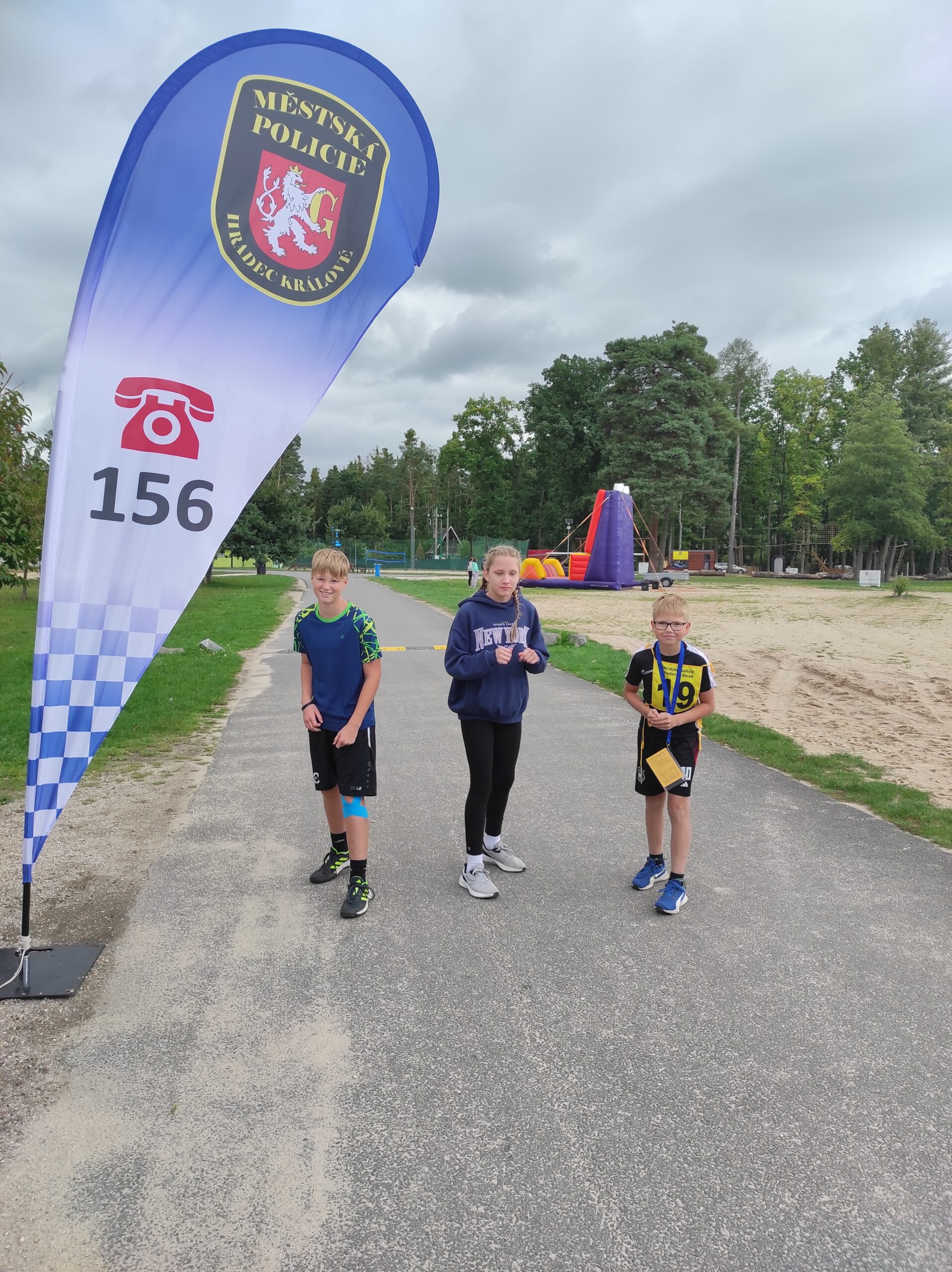 „Tak jsme stříbrní!“ Mohlo prohlásit družstvo složené z Matěje Němečka, Veroniky Řehákové a Matyáše Němce. Ze sportovního dne s Městskou policií Hradec Králové, kterého se účastnilo 10 hradeckých škol, jsme si přivezli krásné druhé místo v kategorii A. Všech 16 žáků z naší školy nás vzorně reprezentovalo a těší se na další ročník.