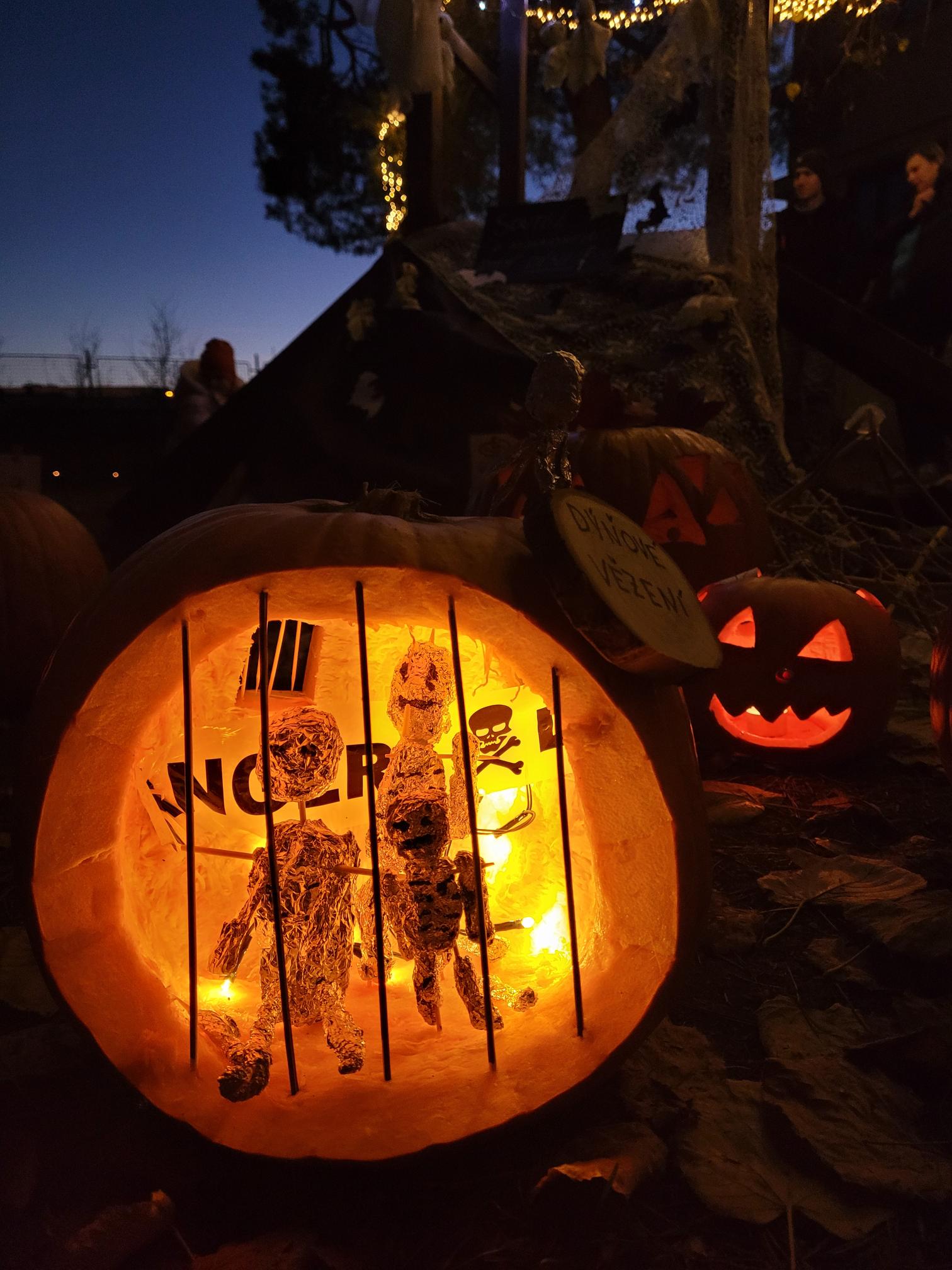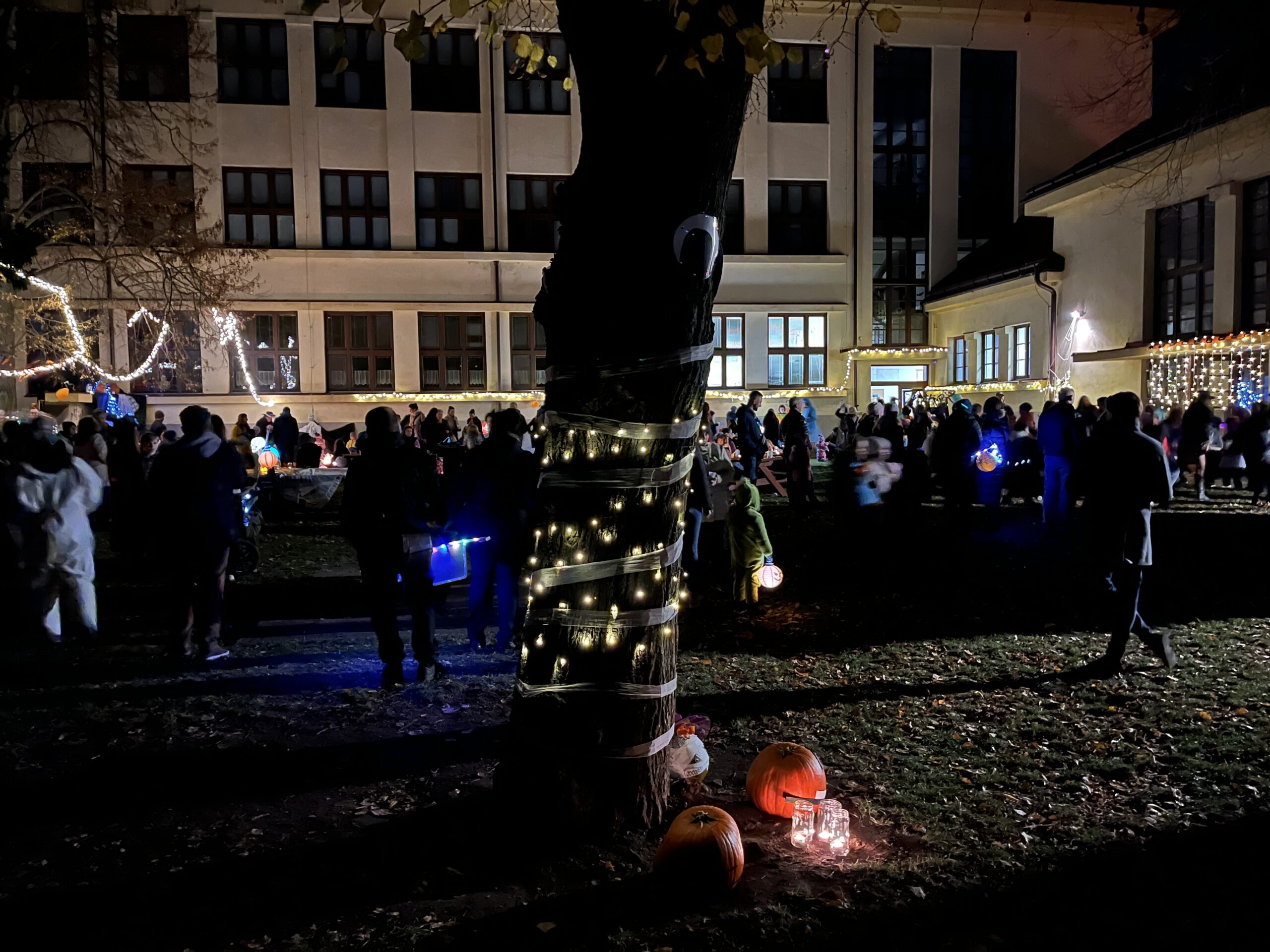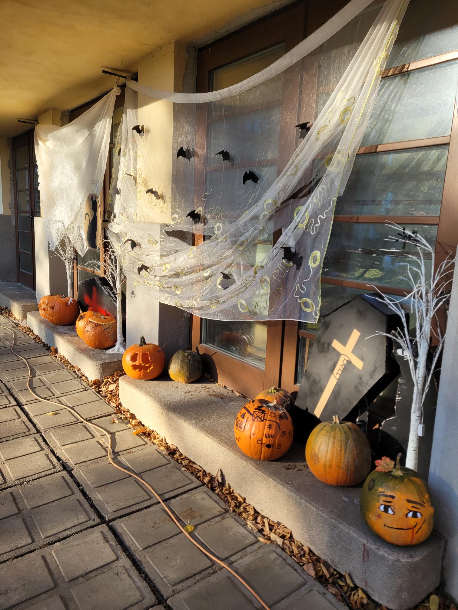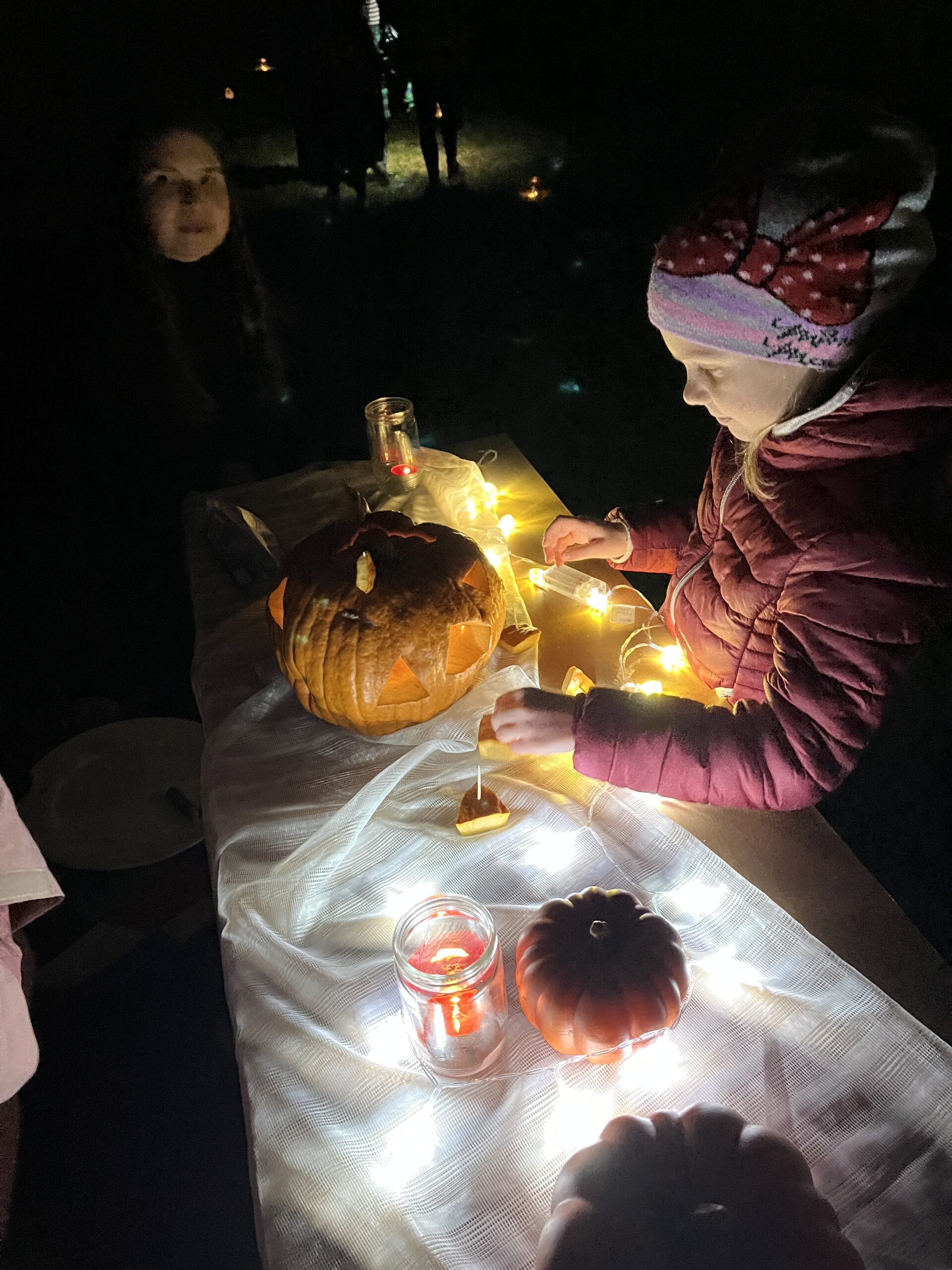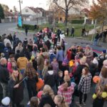 V pátek 7. listopadu se na naší škole uskutečnily dýňové slavnosti. O půl páté vykročil od hlavního vchodu lampionový průvod dlouhý tak, že ho nebylo ani možné zachytit vcelku na jednu fotografii. Účastníky byly nejen děti z naší školy, ale také široká veřejnost. Lampionový průvod prošel přes Plotiště a svou cestu zakončil na školní zahradě, kde se všichni přítomní stali součástí magického večerního reje. Celá zahrada ponořená do tmy byla osvětlená stovkami světýlek a svíček. Vystaveno bylo 60 nádherných svítících soutěžních dýní a byli vyhlášeni výherci z řad žáků i rodičů. Proběhla stezka odvahy, zajištěn byl vynikající strašidelný raut a nechyběl ani tanec v maskách. Byl to kouzelný večer!