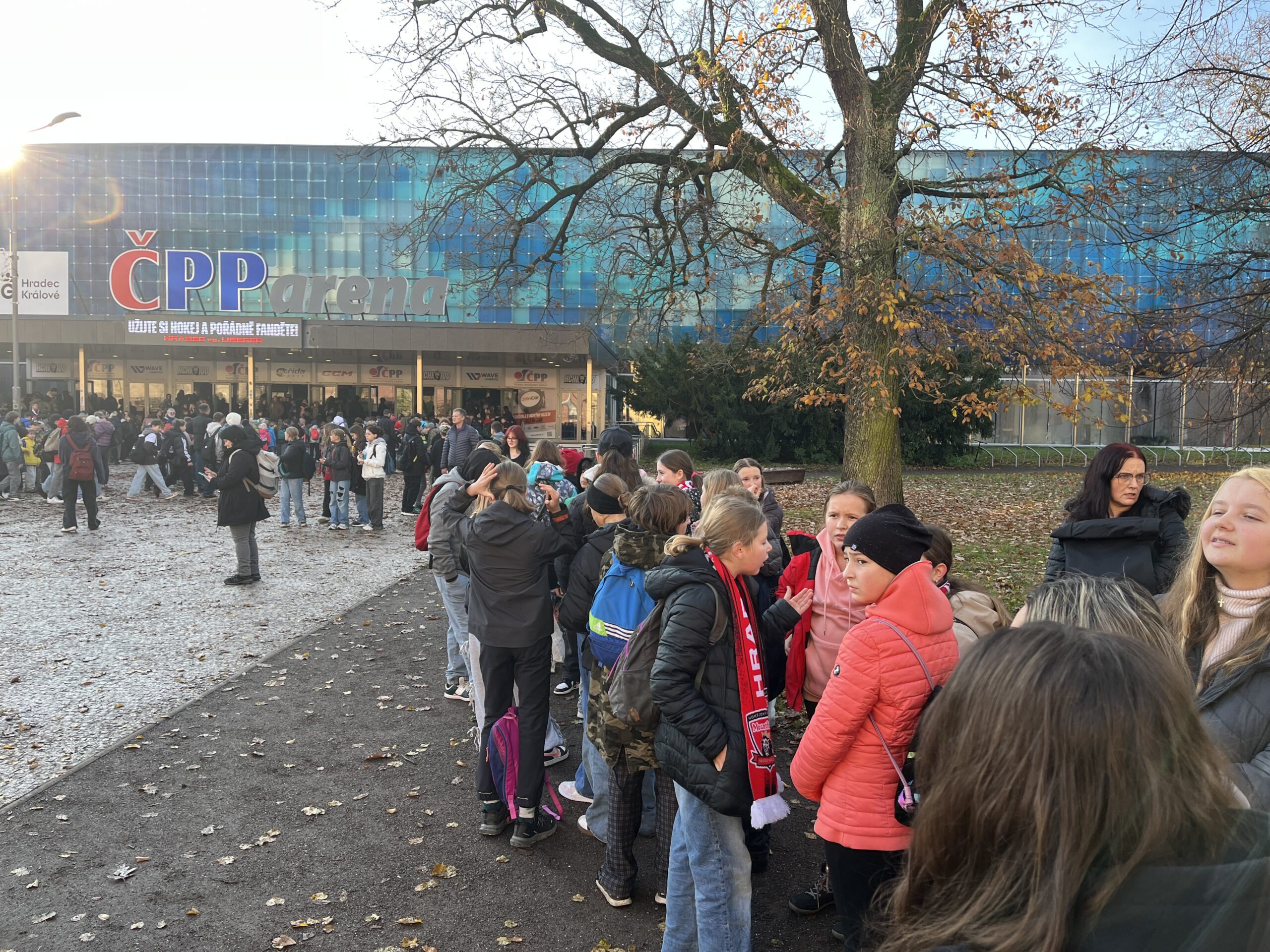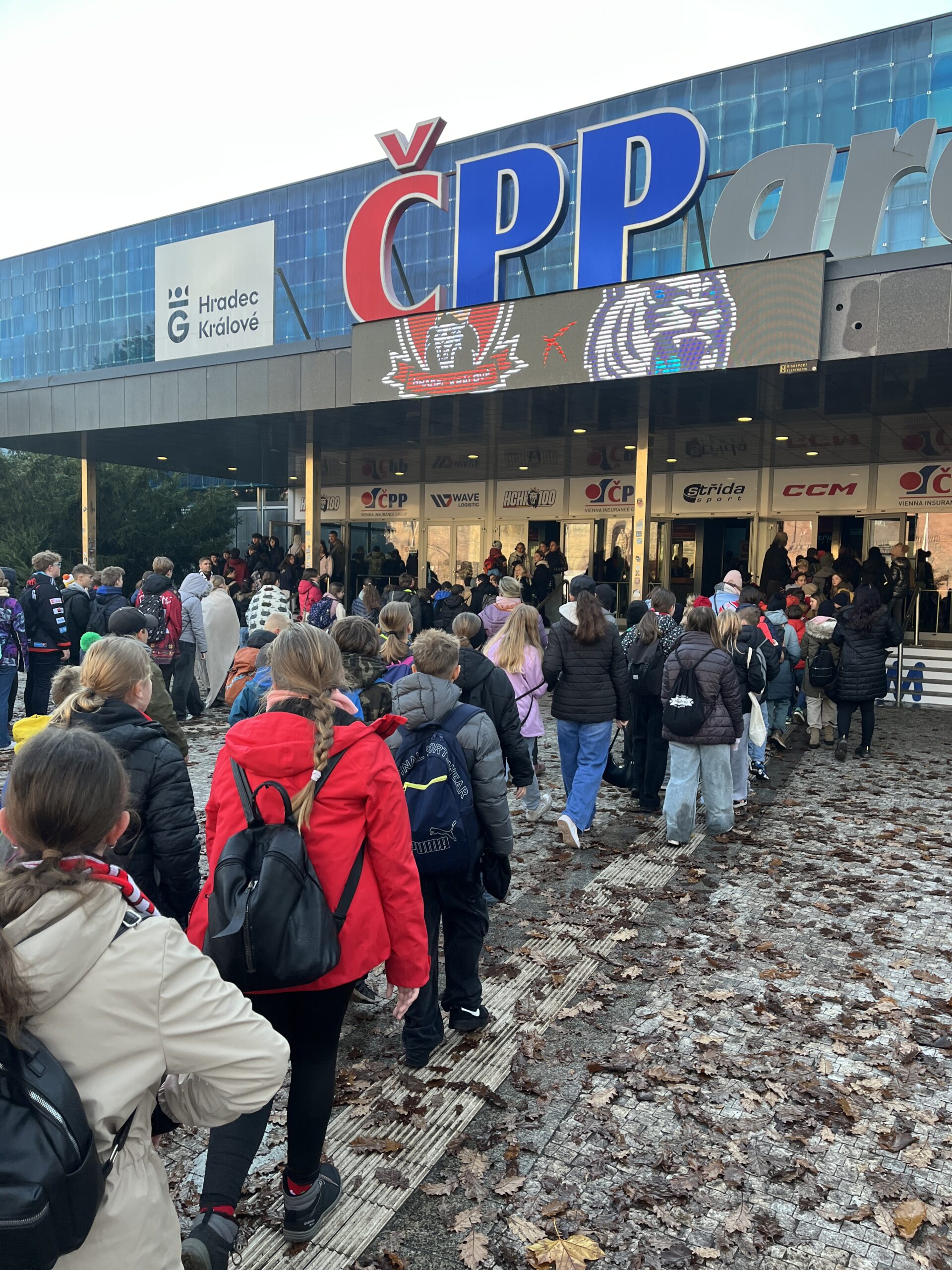 Naši žáci se zúčastnili jedinečné sportovní události v hradecké ČPP Aréně, kde padl historický rekord návštěvnosti žákovského hokeje v Česku. Utkání devátých tříd mezi Hradcem Králové a Libercem sledovalo neuvěřitelných 5 174 diváků, převážně školáků z celého regionu. Atmosféra byla fantastická!