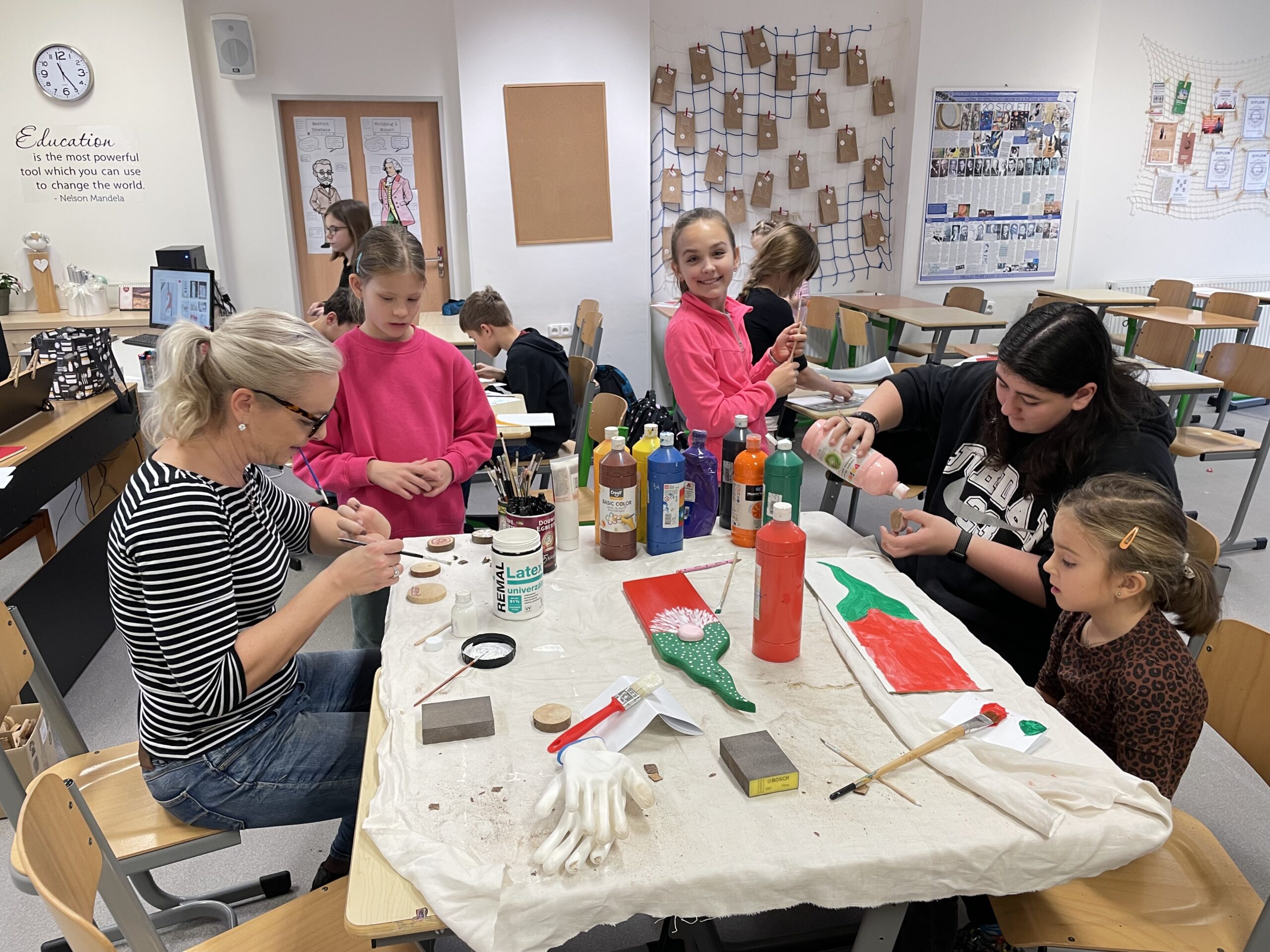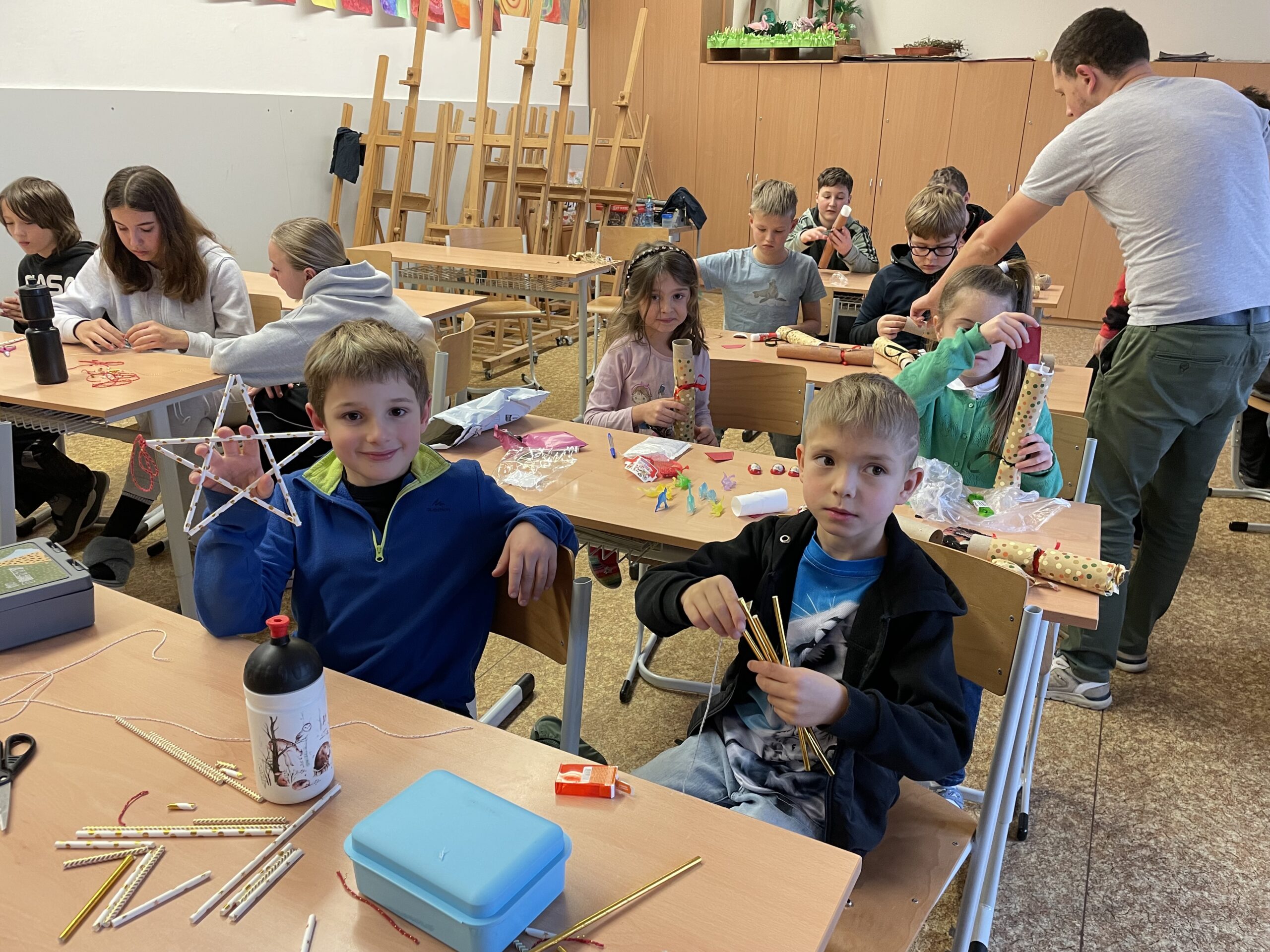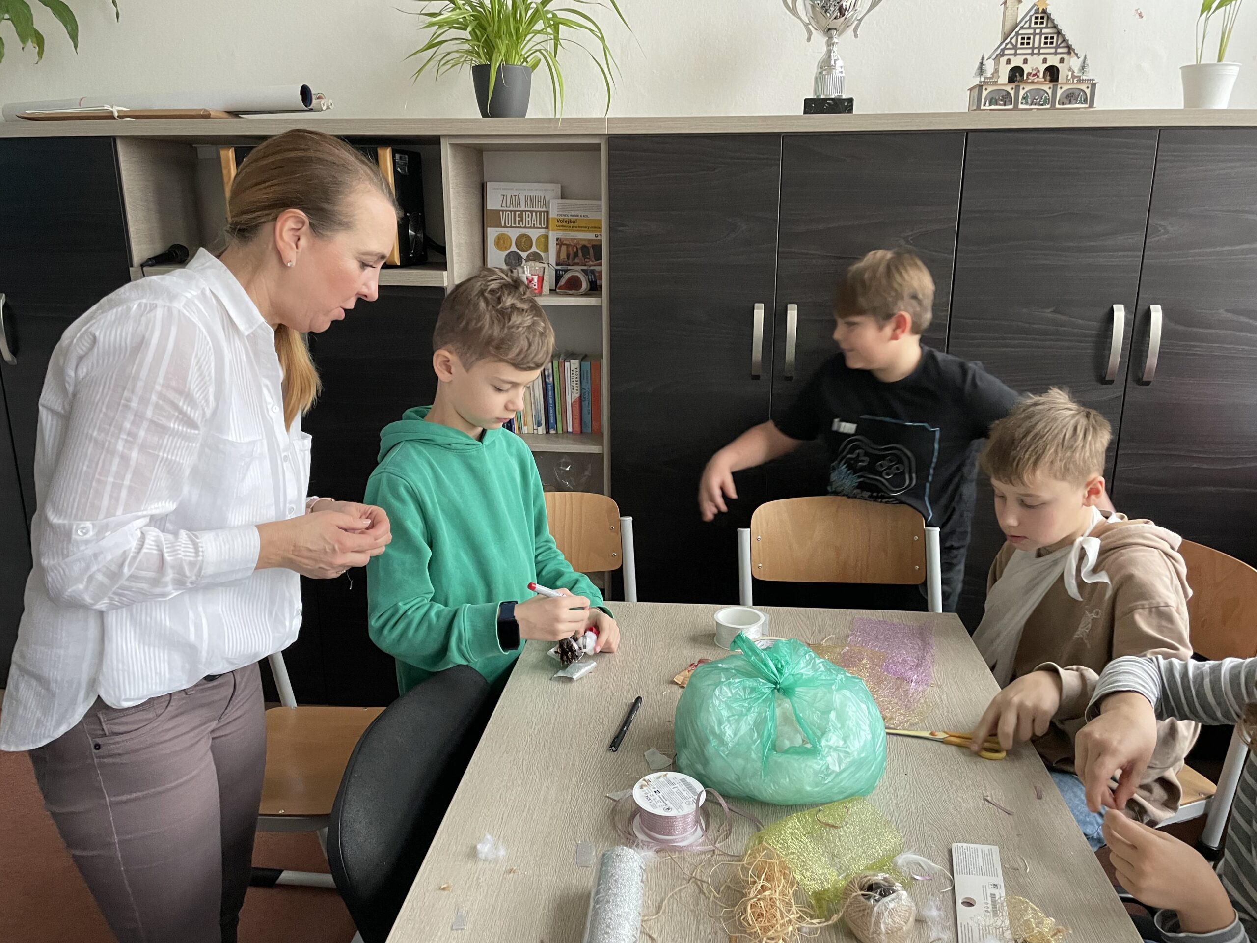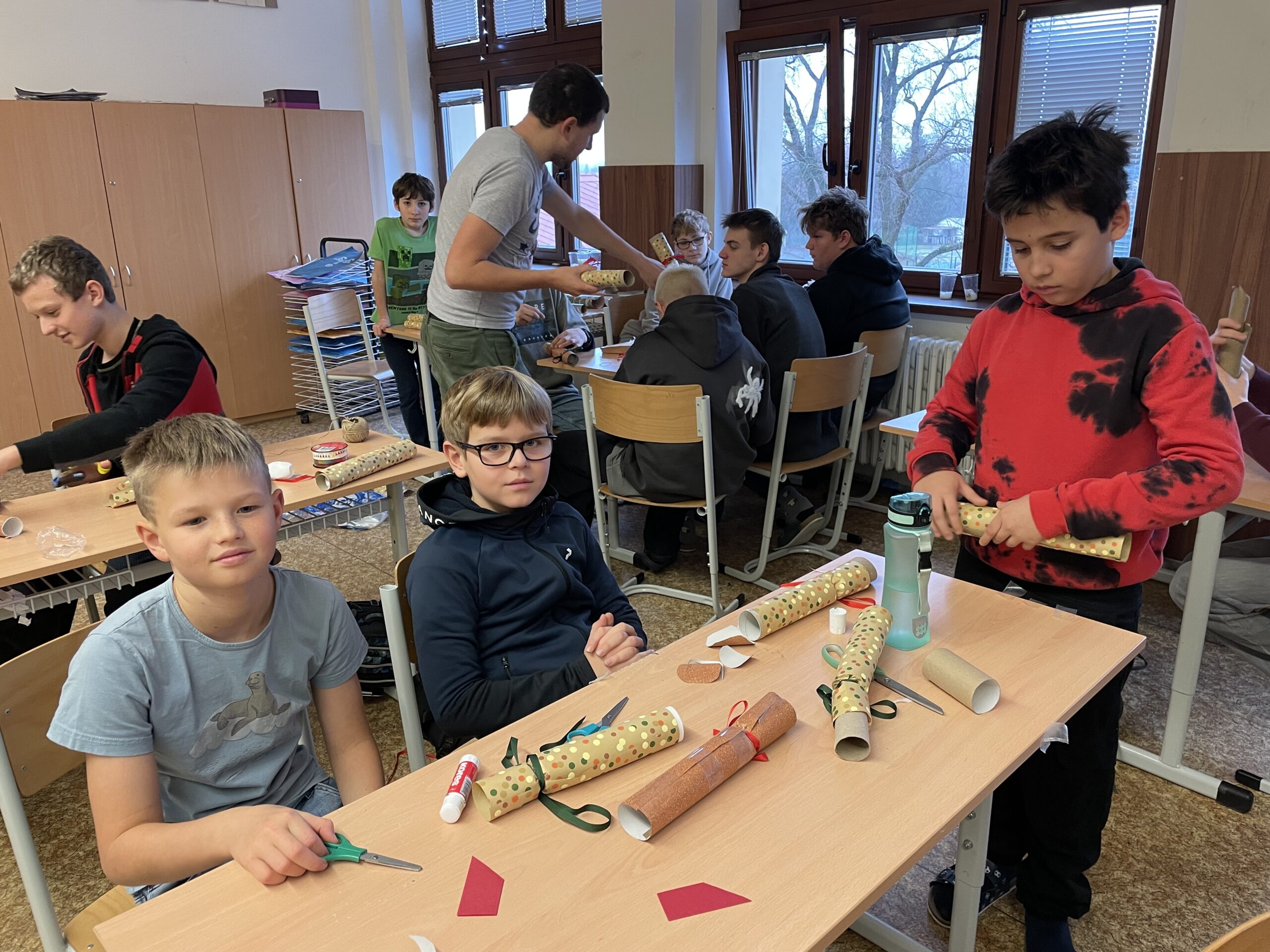 Ve čtvrtek 4. 12. naše škola uspořádala celoškolní dílničky, během nichž žáci od 1. do 9. třídy společně tvořili vánoční výrobky na školní trhy. Skupiny byly věkově promíchané a starší žáci ochotně pomáhali mladším. Po celou dobu panovala příjemná atmosféra a dobrá nálada. Výrobky se všem opravdu povedly!
