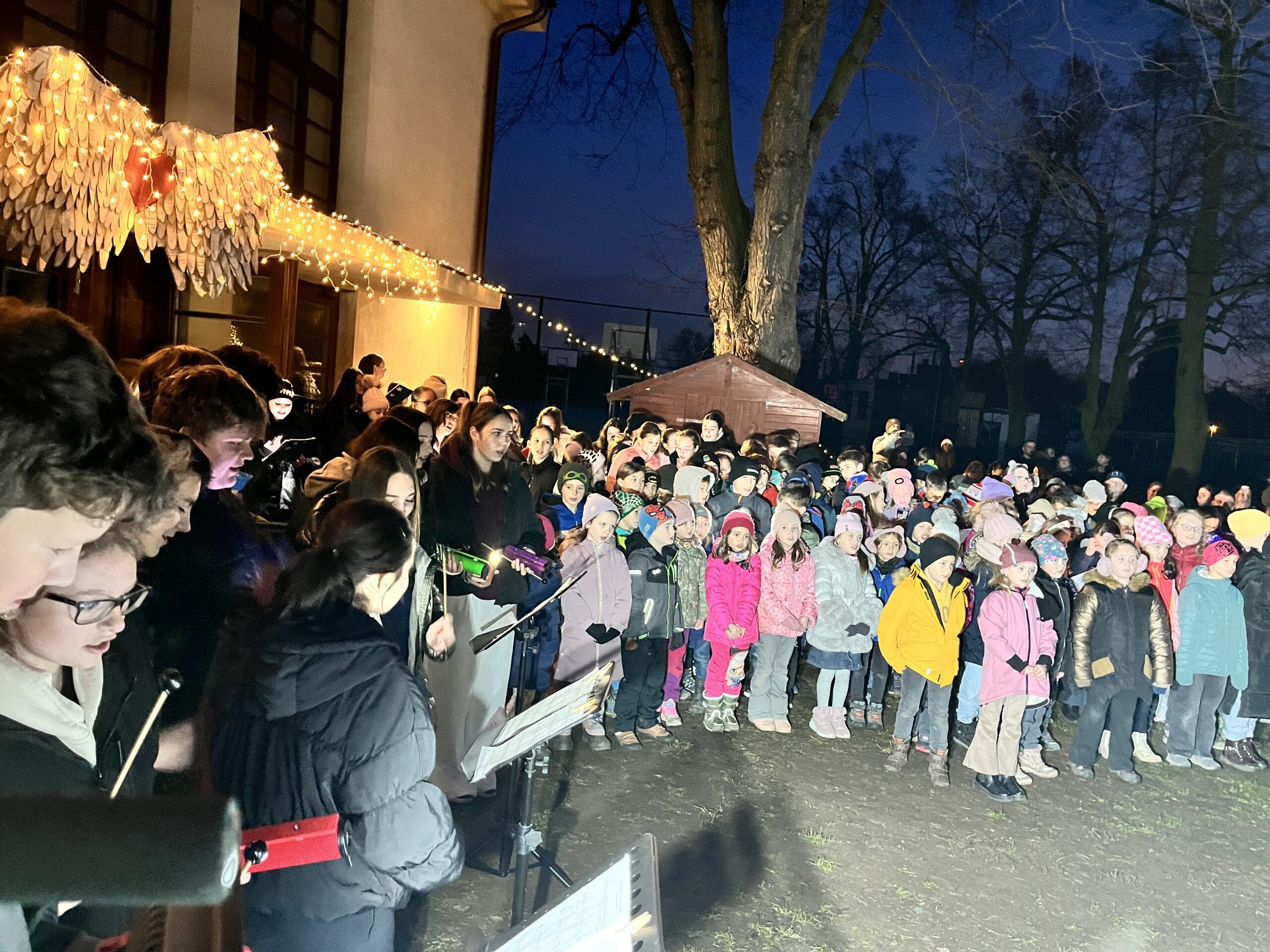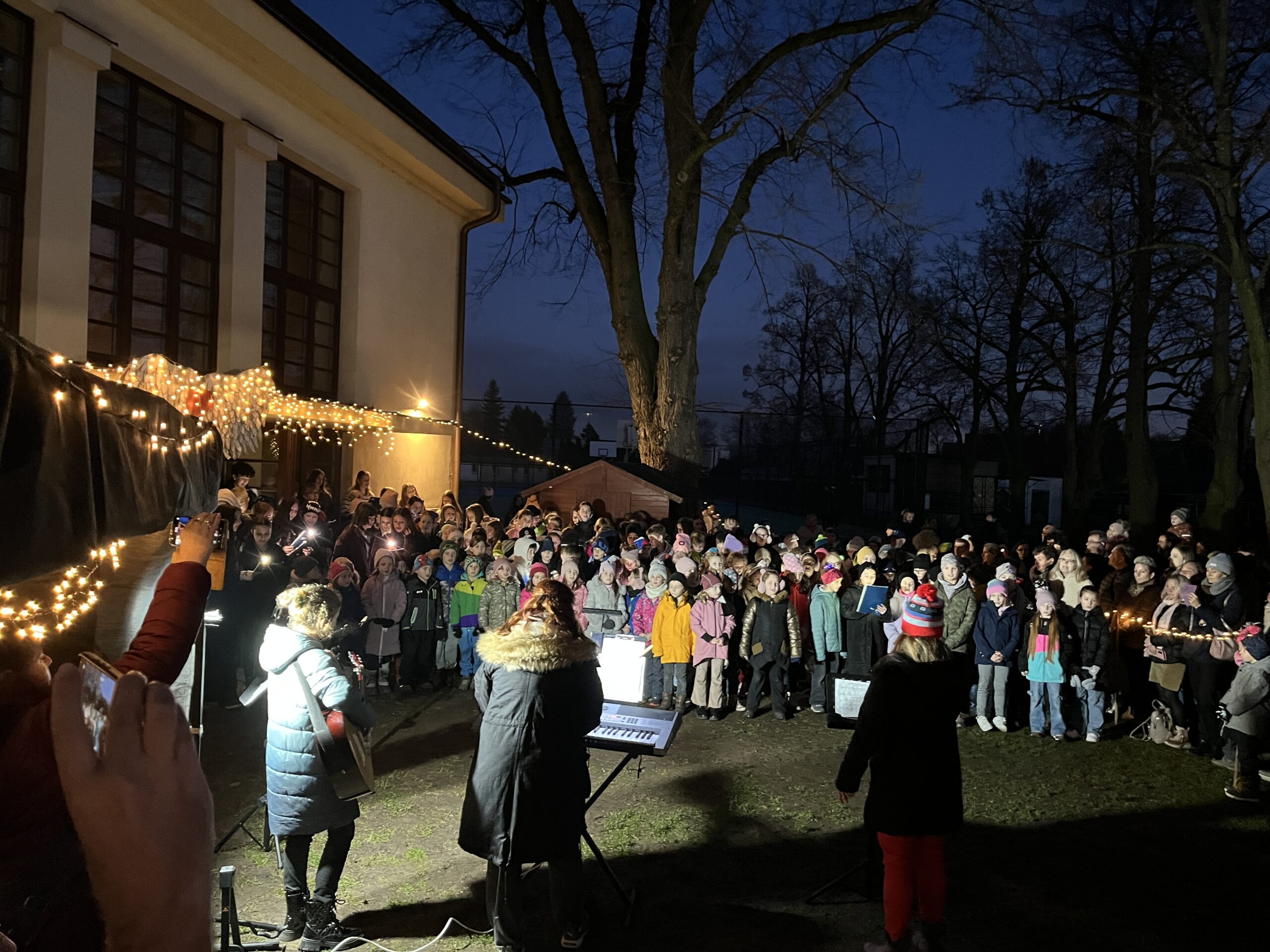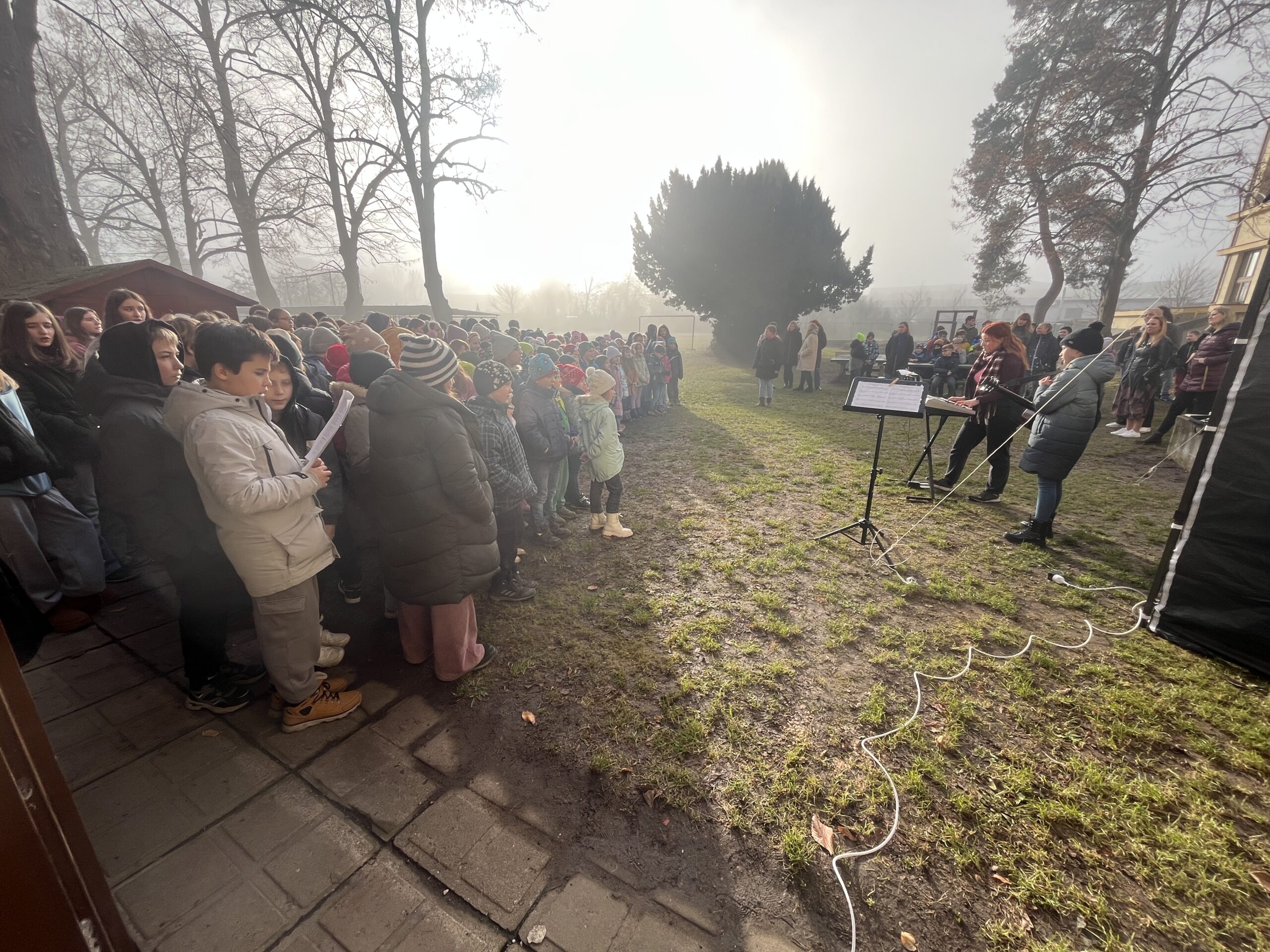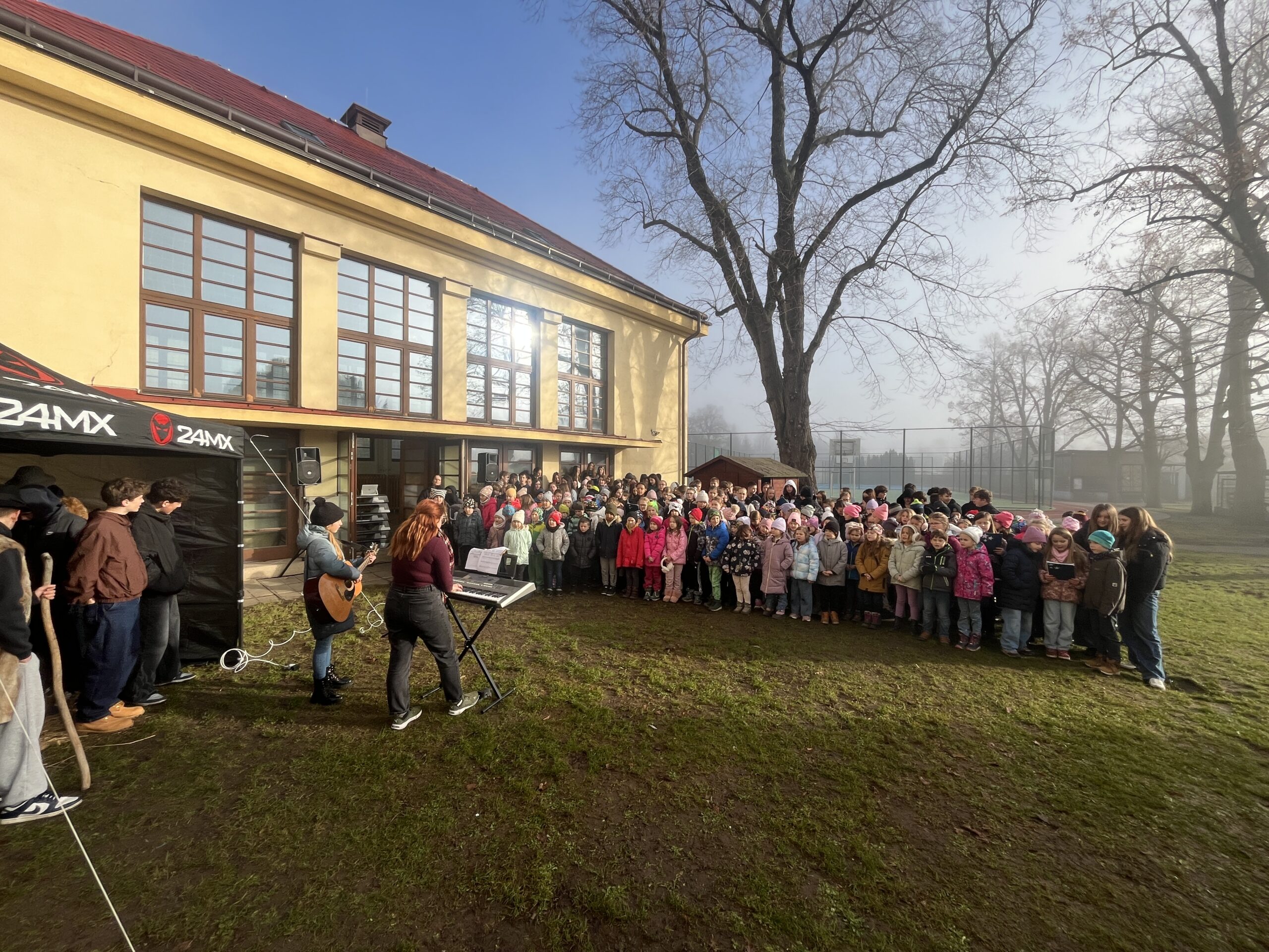 Naše škola letos uspořádala akci Vánoce na zahradě. Děti si připravily pásmo koled, které zazpívaly před rodiči a veřejností. Deváťáci předvedli krátkou dramatizaci o Marii, Josefovi a narození Ježíška, která krásně dotvořila sváteční atmosféru.